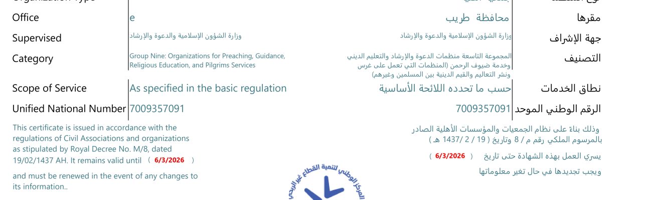 شهادة تسجيل الجمعية في وزارة الموارد البشريةhttps://qurantareeb1.com/wp-content/uploads/2025/10/ترخيص-الجمعية-من-المركز-الوطني-2025.pdf